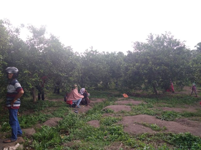 Ratusan pohon jeruk itu ditanam di atas Tanah Putih bercampur Tanah Gambut, setiap pohonnya memiliki banyak buah yang lebat.