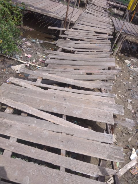 Indragirione.com, - Jerambah yang berada di rumah susun ramah bencana Kelurahan Concong Luar Kecamatan Concong roboh saat 3 orang siswi melintasi jalan jerambah tersebut. Sabtu (4/1).