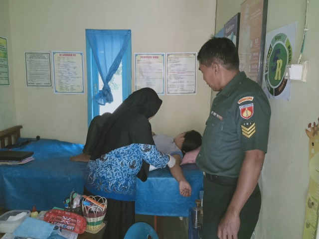 Seperti yang dilaksanakan oleh Babinsa Koramil 02/Pabelan Serka Dul Kholik mendampingi pelaksanaan Pelayanan KB Kes dengan pemasangan implan kepada akseptor di Puskesmas Pembantu Desa Glawan,Kecamatan Pabelan,Kabupaten Semarang oleh Bidan Desa Ning Istiqomah,Senin (17/02)