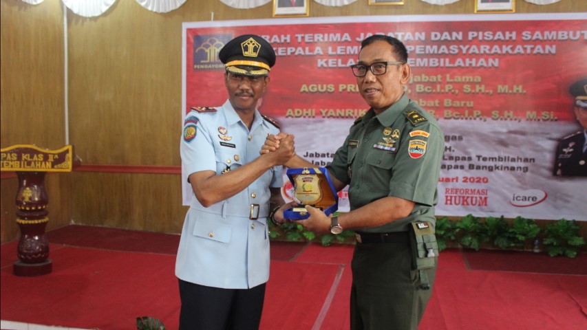 Indragirione.com, - Kepala Staf Komando Distrik Militer (Kasdim) 0314/Inhil Mayor Inf Untung Kusmanto menghadiri acara serah terima jabatan sekaligus lepas sambut Kalapas Kelas llA Tembilahan. Dari pejabat lama Agus Pritiatno, BC. IP. SH. MH. Kepada Kalapas baru Adi Yanriko Mastur, BC. IP. SH, MH. Bertempat di Aula DR. Sahardjo Lapas Kelas llA Tembilahan, Senin (03/02/2020).