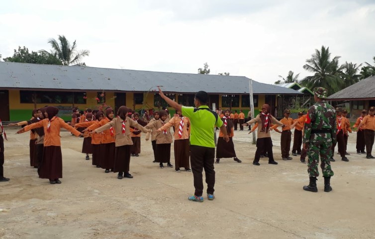 Babinsa Koramil 12/Batang Tuaka, Serda Januar Wasbang Bina Pramuka SDN 002 Sungai Piring