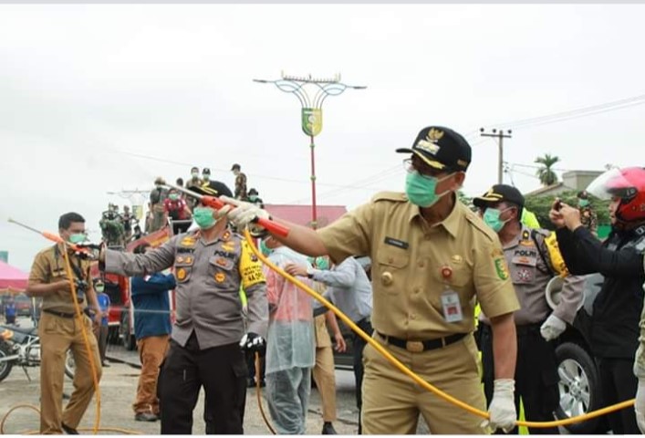 Pemda Kuansing Gelar Penyemprotan Disinfektan Secara Massal Untuk Menekan Sebaran Covid - 19