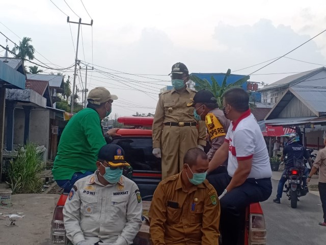 Penyemprotan disinfektan dilakukan sebagai upaya untuk memutus mata rantai penyebaran Covid-19 di Kabupaten Inhil.