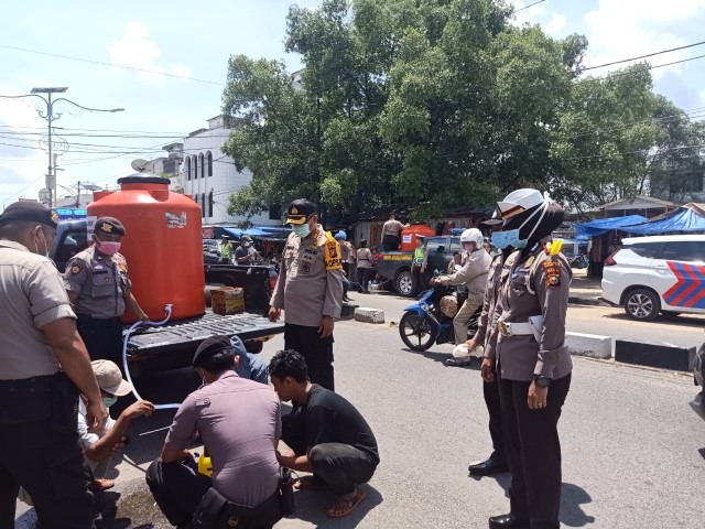 Polres Inhil Bagikan 2000 Liter Disinfektan kepada Masyarakat