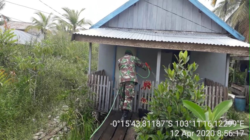 Indragirione.com,- Dalam rangka memutus rantai penyebaran virus Corona Covid-19, Babinsa Koramil 12/Batang Tuaka, Kodim 0314/Inhil terus melakukan penyemprotan disinfektan diruang lingkup perumahan warga wilayah binaan.