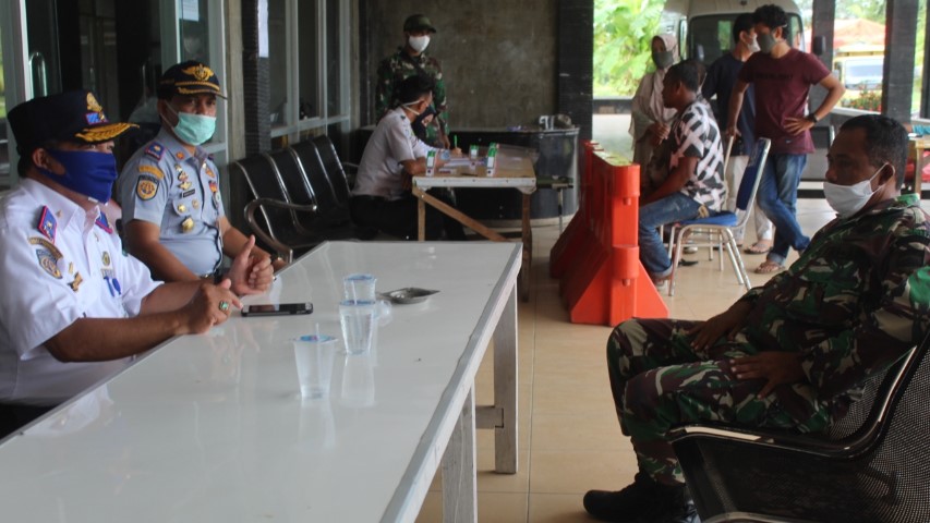 Indragirione.com, - Sebagai tindaklanjut dalam menyikapi keputusan Gubernur Riau yang wilayah Provinsi Riau sebagai zona merah Covid-19, jalur masuk kota Tembilahan, tepatnya di terminal umum Bandar Laksamana Indragiri diperketat penjagaannya.