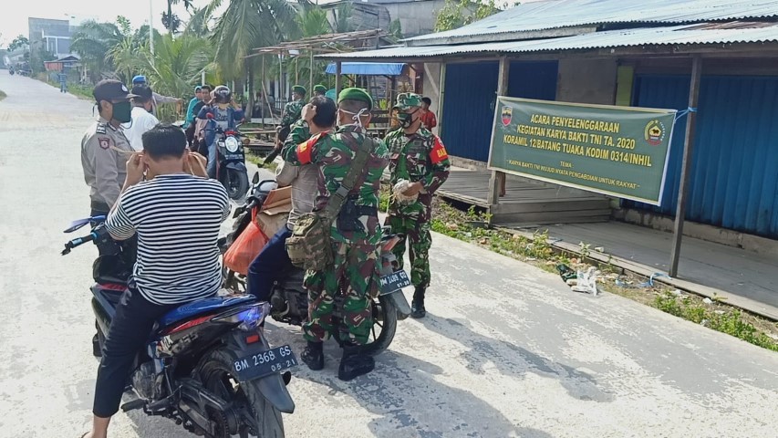 Indragirione.com,- Koramil 12/Batang Tuaka sebarkan masker di Kelurahan Sungai Piring kepada masyarakat di wilayah kelurahan Sungai Piring, Kecamatan Batang Tuaka.