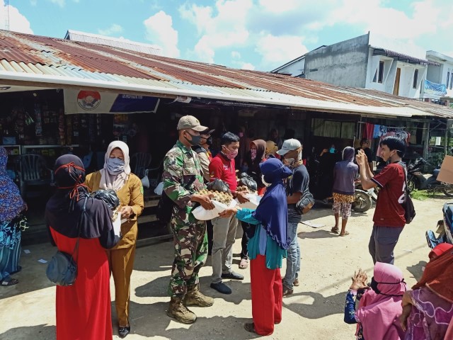 Indragirione.com,- Guna membantu warga akibat mewabahnya penyebaran Covid-19 ini, khususnya dalam pemenuhan kebutuhan pokok bagi masyarakat kecil di Desa Kuala Sebatu, Kecamatan Batang Tuaka, Koramil 12/Batang Tuaka bersama Tiga Pilar menyalurkan bantuan paket sembako, Selasa (21/4/20).