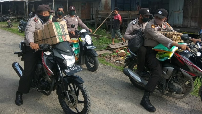"Dengan adanya bantuan sembako kepada warga yang kurang mampu, dapat meringankan beban ekonomi masyarakat. Kami juga menghimbau kepada warga yang mendapat sembako agar menggunakan masker pada saat beraktivitas diluar rumah," tutur Iptu Fadly.