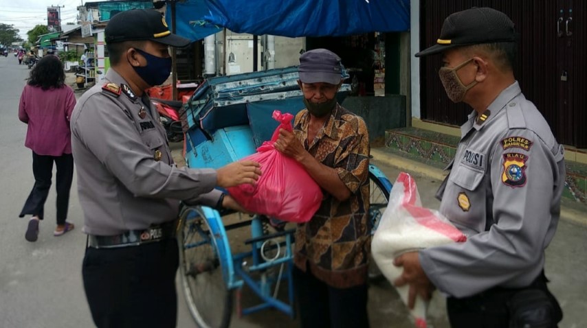 "Dampak dari anjuran pemerintah untuk mengurangi aktivitas di luar rumah serta larangan untuk tidak membuat kegiatan yang mengumpulkan orang banyak, banyak masyarakat bawah yang berada dalam krisis ekonomi termasuk tukang becak yang mengalami penurunan penghasilan," kata AKP Rhino, Kamis (30/4/20).
