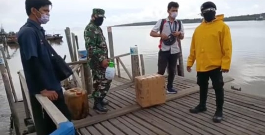 Personil gabungan Babinsa Koramil 11/Pulau Burung melakukan pengamanan dan pengawasan penumpang di pelabuhan 00 guna mengantisipasi covid-19 bersam Tim Kesehatan di Kecamatan Pulau Burung.