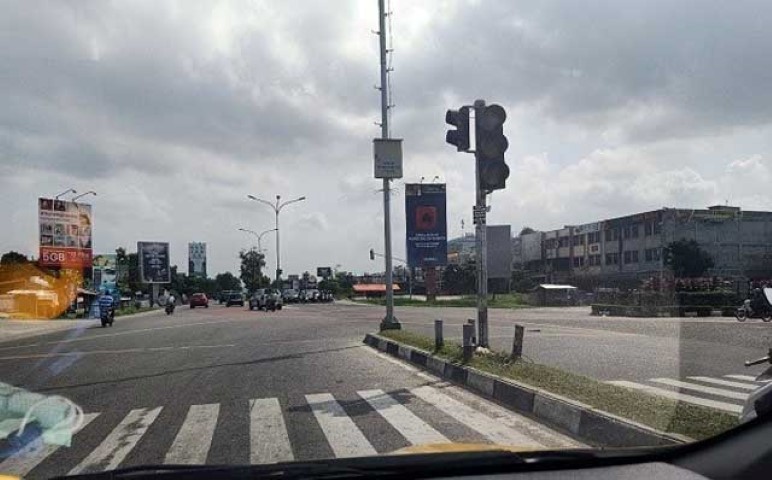 Di simpang lampu merah Jalan Arifin Achmad-Soekarno Hatta, tak ada satupun terlihat gepeng yang meminta-minta. Padahal biasanya, setiap lampu berwarna merah gepeng akan langsung berlari ke arah mobil-mobil untuk meminta belas kasihan pengendara yang lewat.