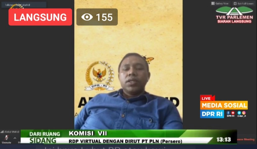 RDP Virtual Bersama Dirut PLN, Abdul Wahid Minta Pelayanan Listrik Daerah Pesisir Hidup 24 Jam