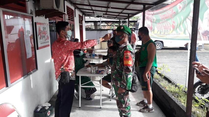 Indragirione.com,- Anggota Koramil 12/Batang Tuaka jajaran Kodim 0314/Inhil mengikuti kegiatan donor darah yang bertempat di PMI Inhil di jalan Veteran, Tembilahan Kota, Jum'at (5/6/20).
