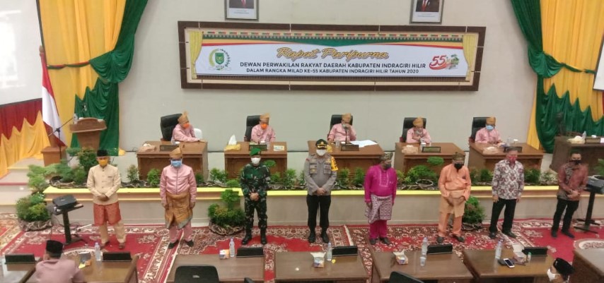 Rapat Paripurna Istimewa dalam rangka memeringati Milad ke-55 Kabupaten Inhil yang mengusung tema "Budayakan Kerja Nyata Lawan Covid-19 Wujudkan Tatanan Kehidupan Baru (New Normal) Menuju Kejayaan Inhil yang Semakin Maju, Bermarwah dan Bermartabat" ini dipimpin langsung oleh Ketua DPRD Kabupaten Inhil, Dr H Ferryandi.