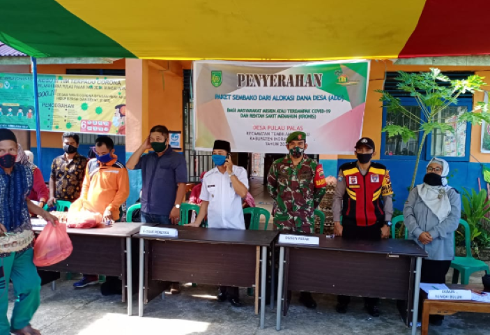 Dalam pembagian sembako Kepala Desa Pulau Palas H Arifin menjelaskan bantuan tersebut diperuntukkan bagi masyarakat yang kurang mampu yang terdampak covid-19.