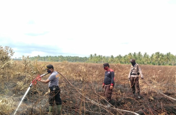 Diketahui lahan yang terbakar merupakan milik masyarakat Parit Sungai Intan Kecil, Desa Sungai Intan, Kecamatan Tembilahan Hulu dengan luas yang terbakar diperkirakan kurang lebih 1,5 hektar, dan berbatasan langsung dengan Parit Masjid, Desa Simpang Tiga Daratan, Enok, Senin (6/7/20).