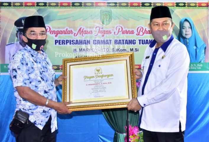 Indragirione.com,- Pengantar Masa Tugas Purna Bhakti dan perpisahan H.Marpoyanto, S.Ikom, M.Si sebagai Camat Batang Tuaka yang di laksanakan di Aula Kantor Camat Batang Tuaka Jl H.Syamai Sungai Piring, Rabu (5/8/2020) dihadiri Wakil Bupati H.Syamsuddin Uti.