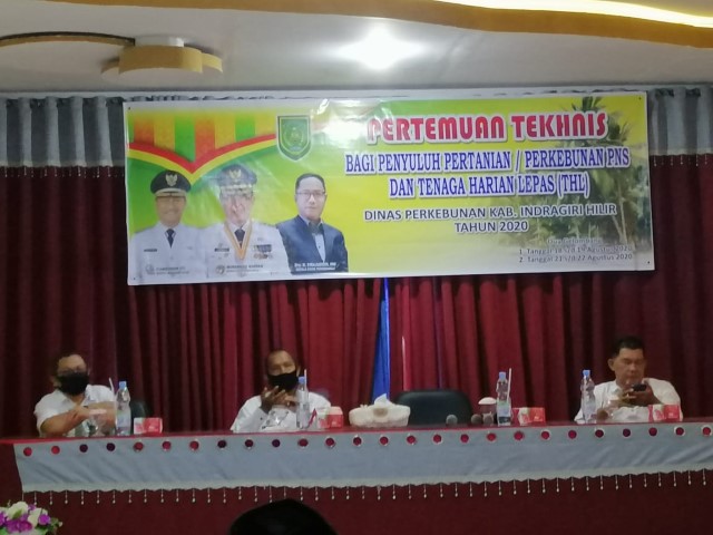 Indragirione.com, - Guna mengevaluasi kinerja yang telah dilaksanakan Penyuluh Pertanian PNS dan Tenaga Harian Lepas -Tenaga Bantu Penyuluh Pertanian (THL-TBPP) pada semester I Tahun 2020,Dinas Perkebunan melalui Bidang penyuluhan menggelar Rapat Teknis seluruh Penyuluh Perkebunan se - Kabuapten Indragiri Hilir di aula Grand Hotel Jalan Batang Tuaka Rabu (19/08/2020)