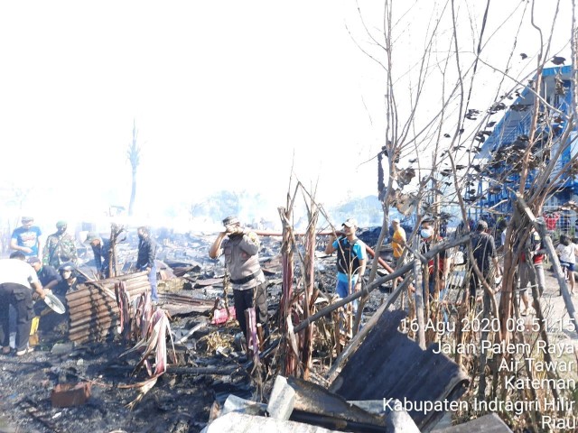 Sementara personil Polsek Kateman tampak dilapangan ikut memadamkan dan mengevakuasi barang-barang yang dapat bisa diselamatkan.
