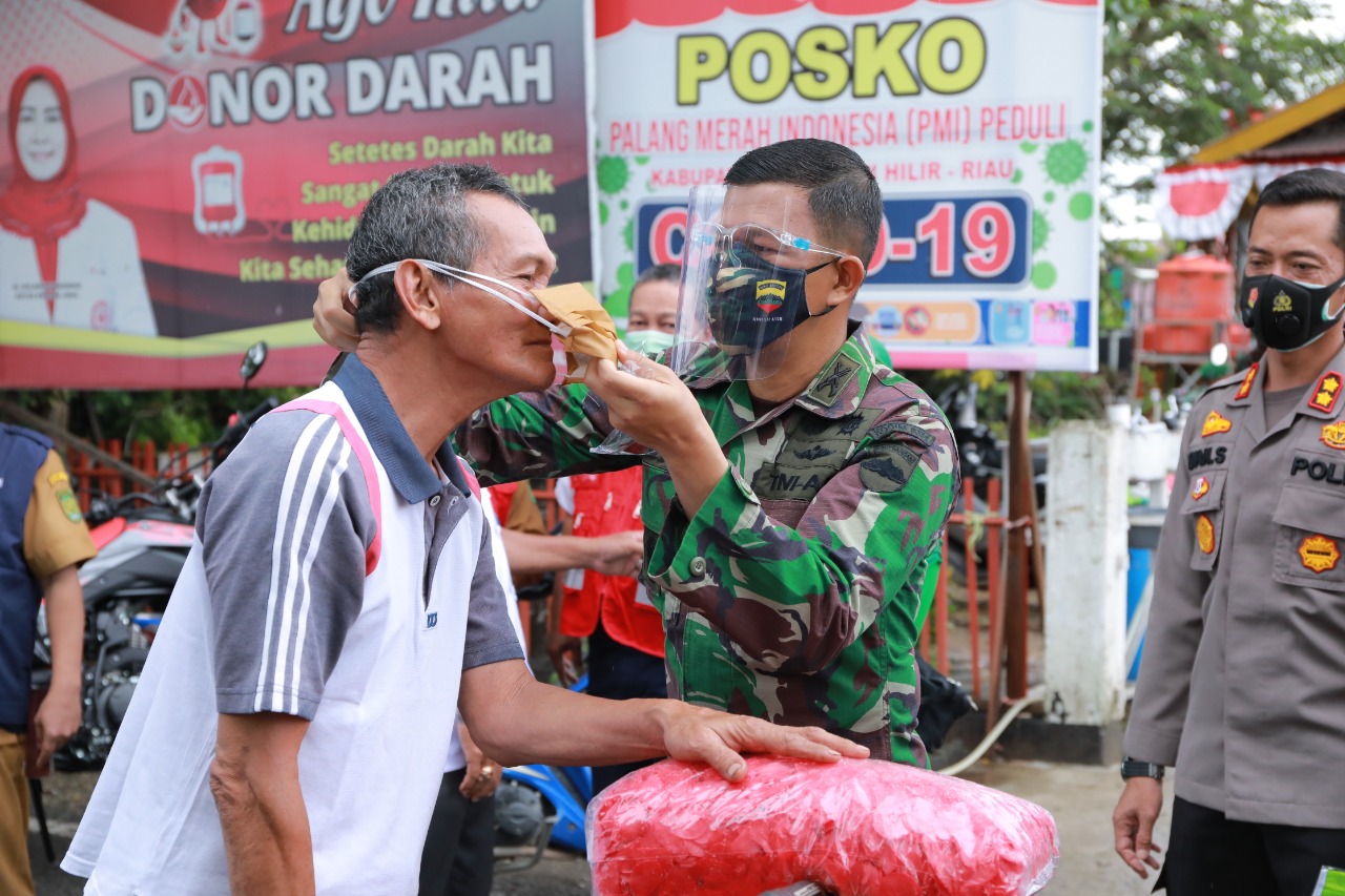 Kodim 0314/Inhil juga dikatakan Dandim melaksanakan kegiatan pembagian masker kepada pengguna jalan untuk mengantisipasi penyebaran Covid-19 di wilayah Inhil.