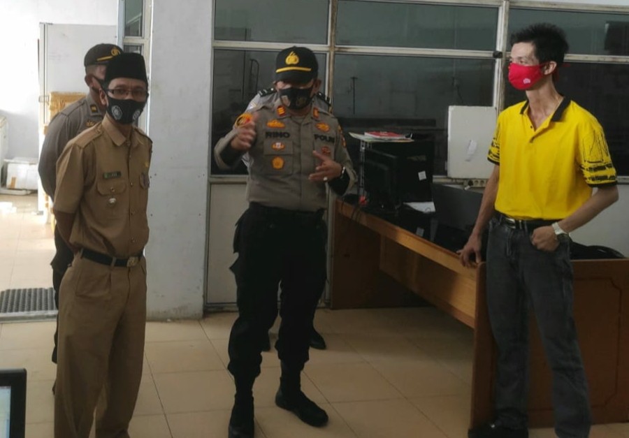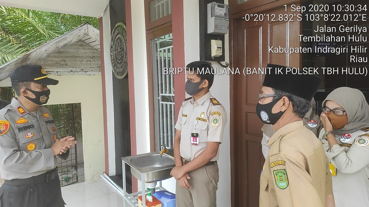 Indragirione.com,- Kapolsek Tembilahan Hulu AKP Rhino bersama Lurah Tembilahan Hulu dan Lurah Tembilahan Barat melaksanakan giat himbauan dan pengecekan kantor pemerintahan, pelaku usaha dalam penerapan protokol kesehatan Covid-19, pada Rabu (2/9/20).