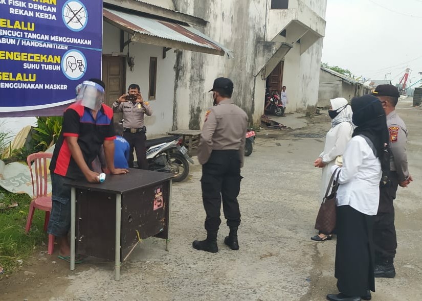 Kegiatan himbauan dan pengecekan protokol kesehatan Covid-19 kepada pelaku usaha dan perkantoran dalam rangka adaptasi kebiasaan baru di wilayah hukum Polsek Tembilahan Hulu.