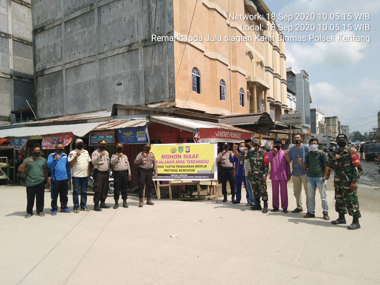 Indragirione.com,- Dalam rangka adaptasi kebiasaan baru oleh Satgas Covid-19, Polsek Keritang melaksanakan giat operasi Yustisi penerapan disiplin dan penegakan hukum Protokol Kesehatan (Protkes) Covid-19, pada Jum'at (18/92020).