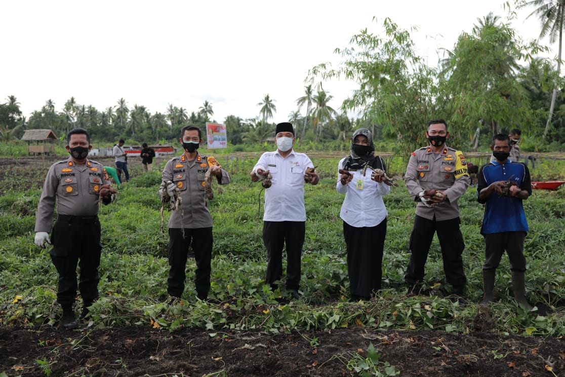Indragirione.com,- Kapolres Inhil bersama kelompok tani (Poktan) Makmur Sejahtera Kelurahan Tembilahan Barat melakukan panen ubi jalar di perkebunan Kampung Tangguh Nusantara, Kecamatan Tembilahan Hulu, Rabu (07/10/2020).