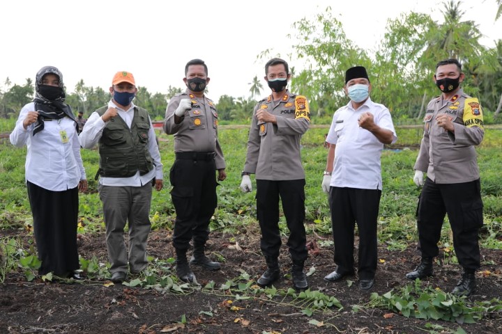 "Mari kita terus lakukan kegiatan bercocok tanam, kita manfaatkan lahan tidur demi mendukung ketahanan pangan,” tutur Kapolres Inhil AKBP Dian Setyawan.