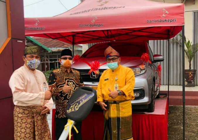 Penyerahan Grand Prize 1 Unit Mobil Honda Brio dan 30 Logam Mulia Emas Antam 1 Gram di gelar di Kantor Bank Riau Kepri Cabang Tembilahan Jalan Telaga Biru Tembilahan, Jum’at (9/10).