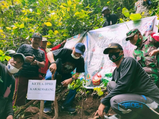 Penghijauan penanaman pohon yang bertujuan untuk melestarikan Pohon disekitar Mata Air mengantisipasi adanya bahaya banjir ini, Ketua DPRD Kab. Semarang Bondan Marutohening,Kepala DLH Kab. Semarang Plt.Wiwoho,Kepala Desa Nyatnyono Parsunto,Babinkamtibmas Nyatnyono Aiptu Widodo,Mahasiswa UNDIP,Mahasiswa UNDARIS, Anggota Relawan penanaman Pohon Perlindungan Sumber Mata Air Lingkungan / Wilayah Desa Nyatnyono,Anggota Relawan Nyawa Wali Desa Nyatnyono,Anggota Banser /Ansor Desa Nyatnyono
