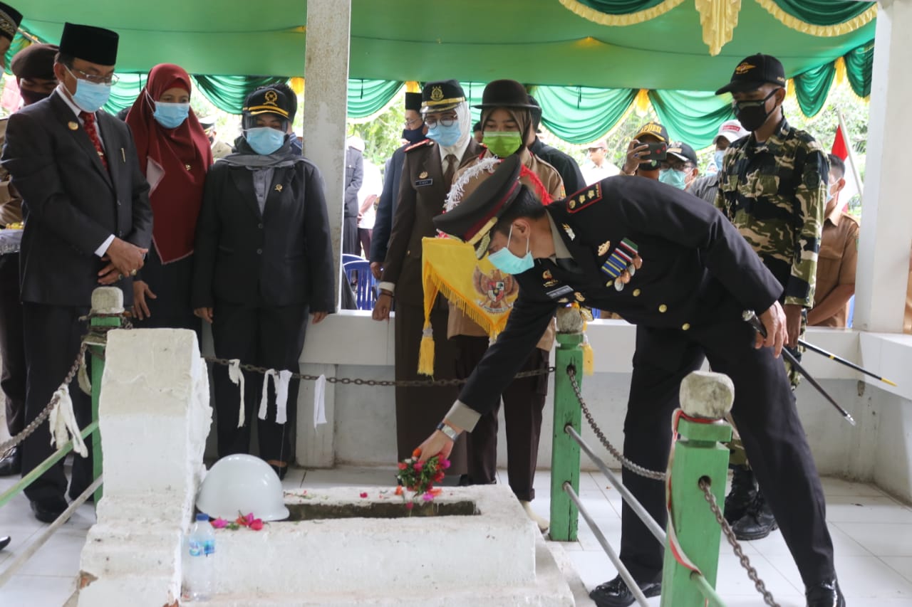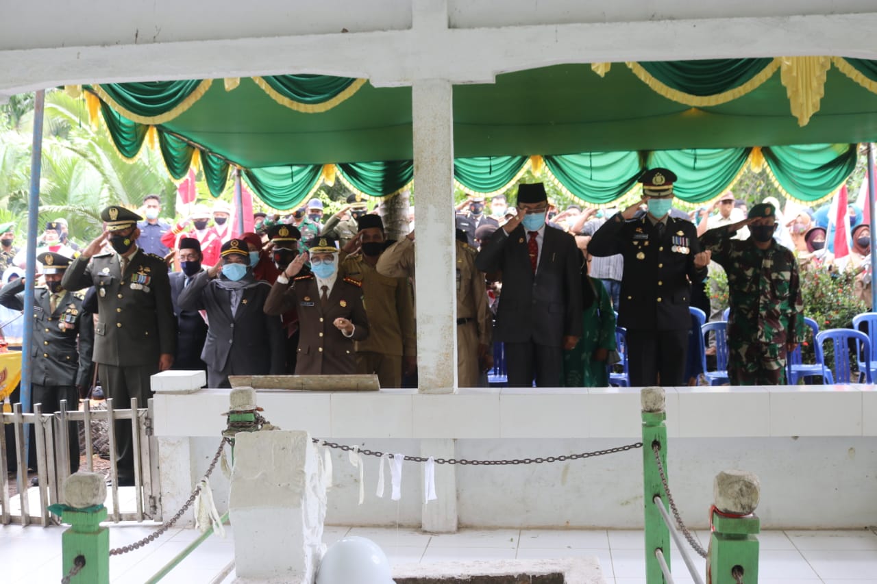 Selain ziarah ke makam pahlawan M Boya, juga dilakukan penyerahan tali asih dari forkopimda Inhil kepada anak (putri) satu-satunya pahlawan M Boya, Makcik Masniah (71 tahun).