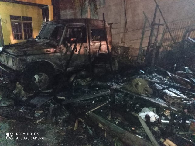"Yang terbakar 1 unit warkop yang terbuat dari kayu milik Edi (50 tahun) dan 1 buah mobil merk Suzuki Katana tahun 90 milik Odi (30 tahun)," ujarnya saat di lokasi kejadian.