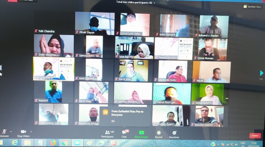 Kehadiran ketua umum PWI di zoom meeting bersama wartawan di Riau sudah seak lama dinantikan. Wartawan di Riau sangat antusias mengikutinya hal ini ditunjukan banyaknya pertanyaan yang disampaikan setelah dia menyampaikan materi.
