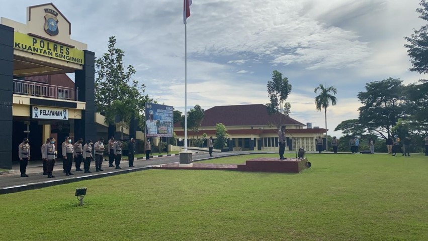 Indragirione.com, - Polres Kuansing melaksanakan Apel Pelepasan BKO PAM TPS Polda Riau Operasi Mantap Praja Tahun 2020 Kab.Kuansing di Lapangan Mapolres Kuansing, Jum'at (11/12/2020).