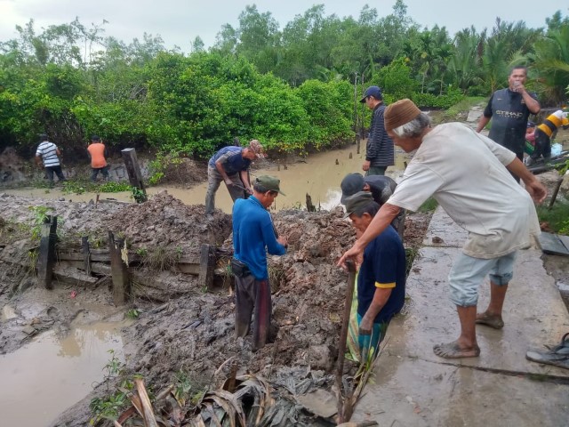 Bertempat di halaman Masjid, Bhabinkamtibmas Desa Sungai Terab bersama warga Desa 3 Serangkai, Desa Sungai Terab, Desa Tanjung Labuh dan Desa Sungai Mahang Kecamatan Reteh melaksanakan goro pemasangan pintu Klip Air halaman Masjid Al-Muttaqin.