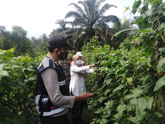 Panen sayur berupa kacang panjang dan kangkung yang dilakukan Camat Kuantan Mudik, Sadah Risna S STP MSi, perwakilan TNI/Polri, Danramil, Kades, PPL Petanian serta beberapa perwakilan dari Upika lainnya terlihat antusias.