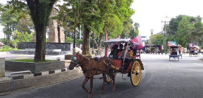 Mengendarai Dokar,Cara Unik Dandim Salatiga Berikan Himbauan Penerapan Prokes Pencegahan Covid-19