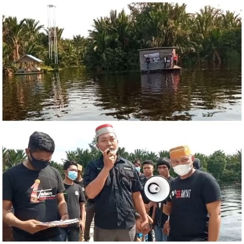 Blokade jalur akses PT THIP Pelangiran disaksikan oleh pihak pemerintah Desa, aparat penegak hukum TNI dan Kepolisian.