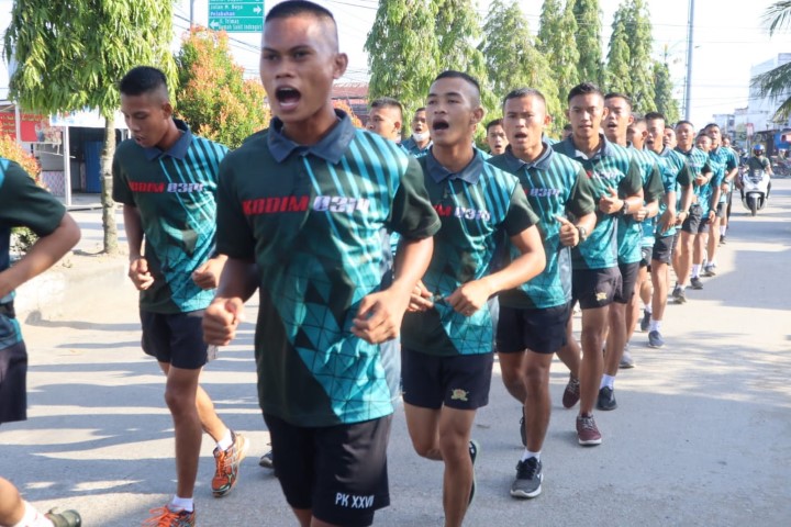 Setelah melaksanakan Apel pagi di Makaodim 0314/Inhil yang di ambil Langsung Oleh Danki Latihan Bintara remaja dan tamtama remaja Letda Inf Nanang Personil Kodim bergerak menuju jalan A.Yani dan lanjut ke Jln Sudirman menuju Jln Swarna Bumi dan di lanjutkan ke jalan Telaga biru dan kembali ke Makodim 0315/Inhil sejauh 10 Kilo meter ditempuh prajurit dengan berlari dan berjalan secara bersama sama sehingga timbul rasa kebersamaan juga kekompakan antara seluruh prajurit yang masih muda ini.