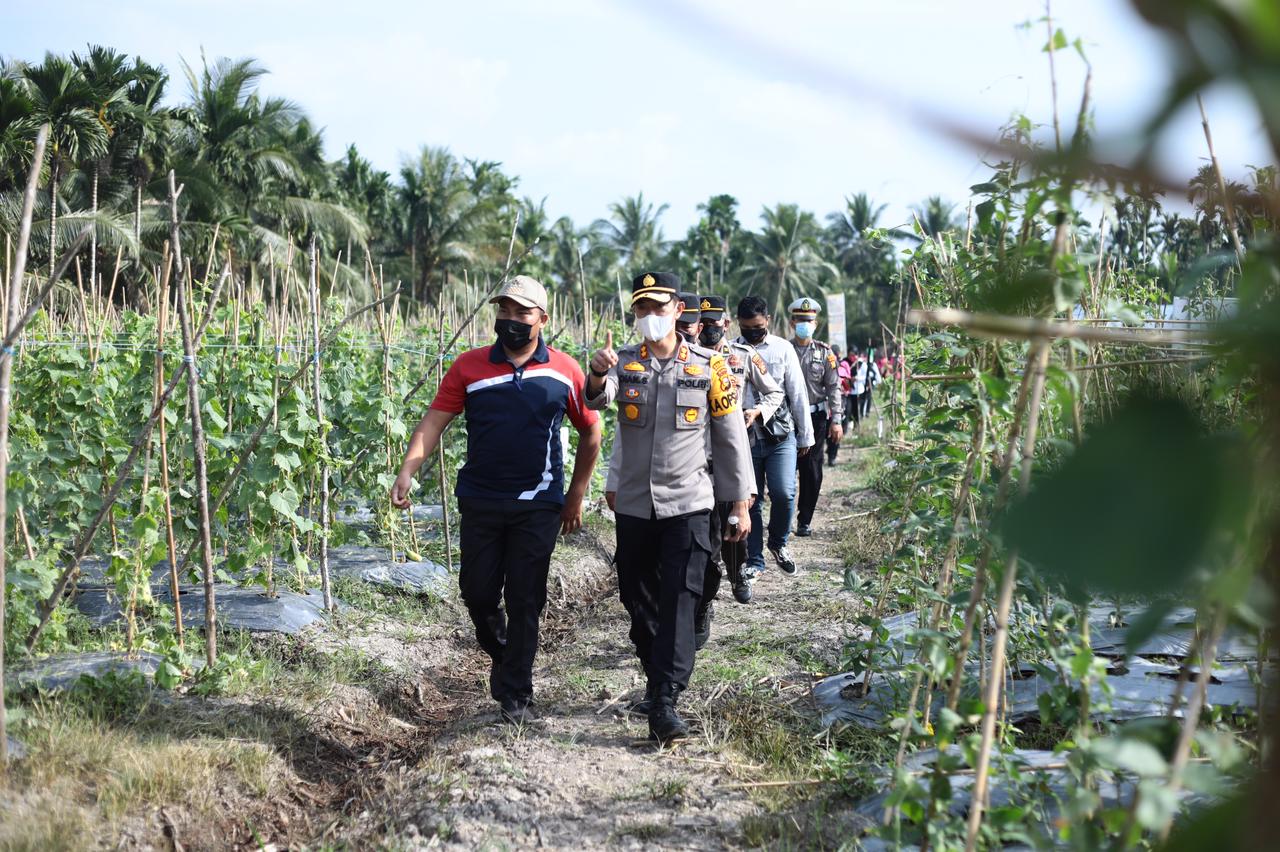“Program Kampung Tangguh di Desa Pekan Kamis ini berhasil menyejahterakan masyarakat di sini. Terutama yang menjadi bagian Kelompok Tani Karya Mekar, mereka tidak perlu lagi mengeluarkan biaya banyak dalam penyediaan sayur-sayuran,” ujar Kapolres Inhil AKBP Dian.