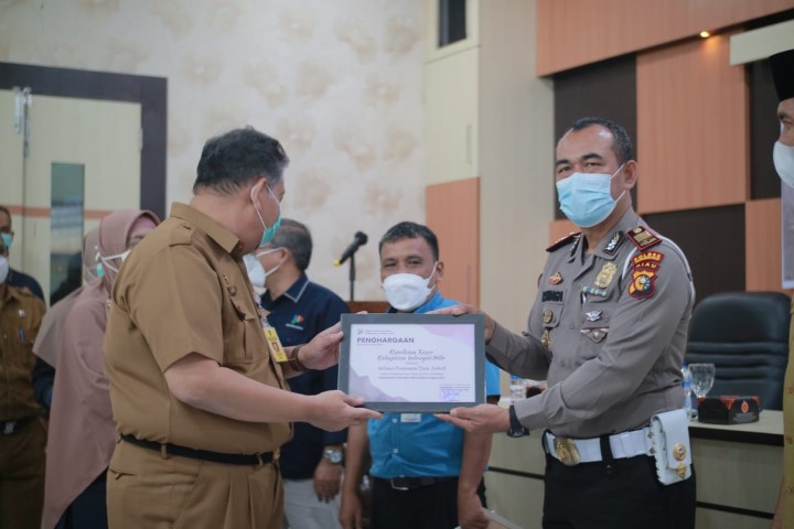 Penghargaan itu diberikan oleh Pemerintah Kabupaten Inhil melalui Sekretaris daerah (sekda) kepada Polres Inhil yang diterima oleh Kasat lantas Polres Inhil bertempat di Aula Gedung Bappeda Inhil Kecamatan Tembilahan.