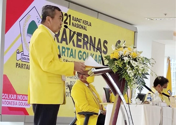 Indragirione.com, - Ketua DPD I Partai Golkar Riau, H Syamsuar menghadiri pembukaan Rapat Kerja Nasional (Rakernas) Partai Golkar tahun 2021 yang digelar di Kantor DPP Partai Golkar, Slipi, Jakarta Barat, pada Jumat (5/3/2021) malam.