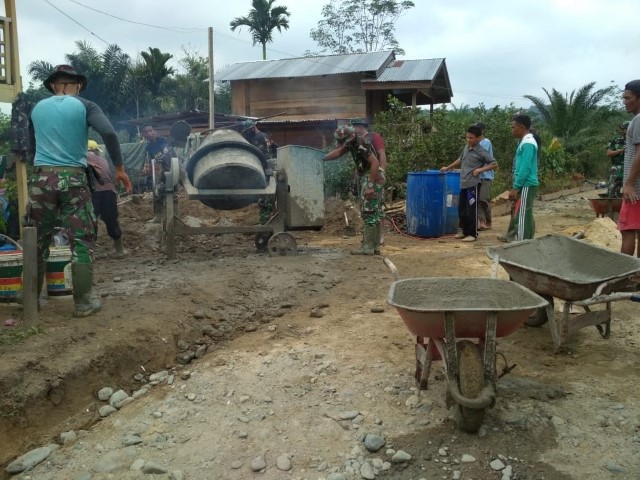 Indragirione.com, - Sudah sepantasnyalah kita acungkan jempol kepada Pihak TNI dan Masyarakat yang bekerja dibawah panas terik matahari untuk Pembangunan semenisasi jalan yang berada di Rt 01 Rw 06 Dusun Koto Ingin Desa Koto Ruang Kecamatan Rokan IV Koto Kabupaten Rokan Hulu. Kamis (11/03/2021).