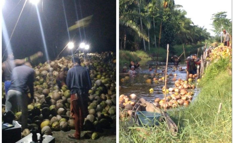 Masyarakat Lahang Hulu Kembali Mengupah Mengupas Kelapa Untuk Membangun Masjid