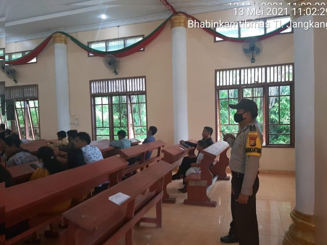 Indragirione.com,- Pengamanan misa atau kebaktian dilakukan personil Polsek Kemuning, Polres Inhil di 18 Gereja sekitar wilayah kecamatan Kemuning, Rabu 13 Mei 2021.