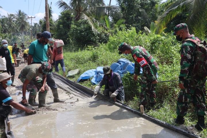 ”Saat mengecek ke lapangan secara langsung, saya perhatikan terlihat begitu padunya warga dan prajurit TNI melakukan gotong-royong, sehingga pembangunan Jalan Yakub 2 yang volumenya 750 meter sudah mencapai 250 meter dikerjakan atau 33,33 persen, sungguh hasil yang memuaskan bagi saya pribadi," ujar Dandim Letkol Inf Imir Faishal.
