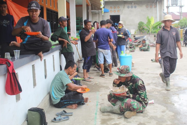 Disinilah tampak kedekatan TNl bersama rakyat. Sambil makan bersama disertai canda tawa di sela sela waktunya bekerja, Jum'at (25/06/2021).