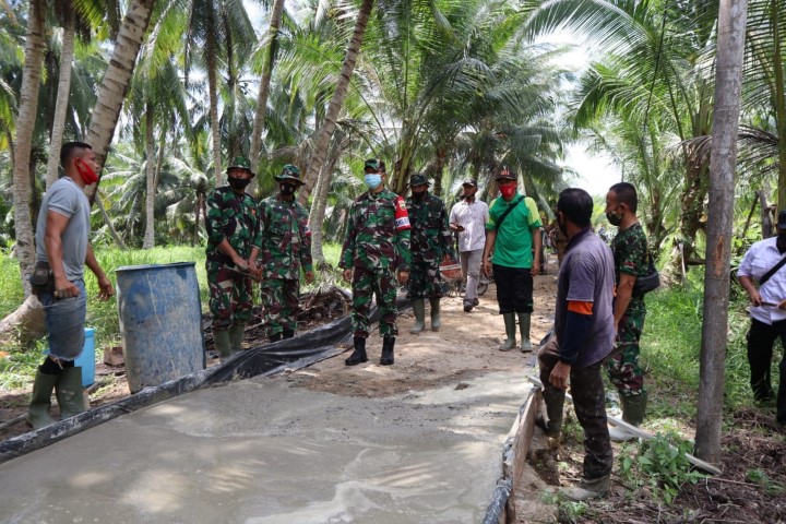 Indragiri Hilir,- Sasaran kedua yang dikunjungi Dandim Letkol Inf Imir Faishal beserta rombongan yakni jalan penghubung antara Desa Teluk Bunian dengan Desa Terusan Beringin Jaya, Kecamatan Pelangiran, Kabupaten Indragiri Hilir yang menjadi lokasi pelaksanaan program TNI Manunggal Membangun Desa (TMMD) ke- 111 Tahun 2021.